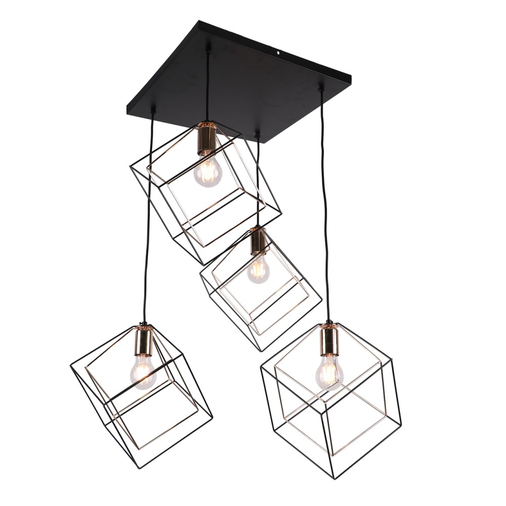 Люстра подвесная 4*60Вт E27 MD.0830-4-P BK+FGD