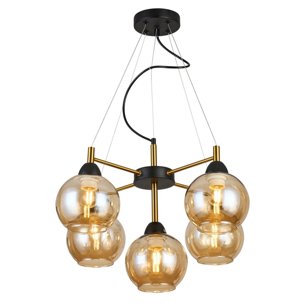 Люстра подвесная, 5*Е27, черный+медь, плафон янтарь MD.9056-5-P-BK+COP