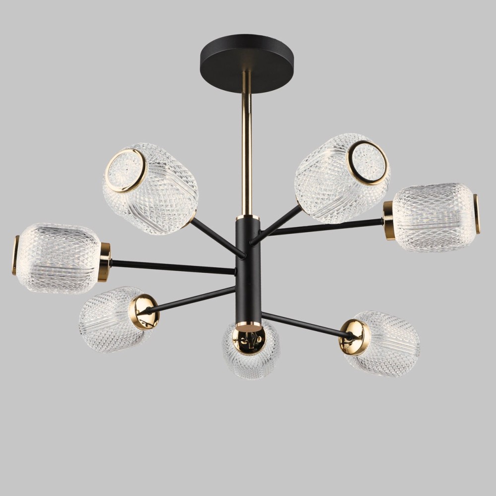 Технические характеристики Люстра потолочная LED, 7*6W, 3000K+6500K, черный+золото PLC-7075-680-7