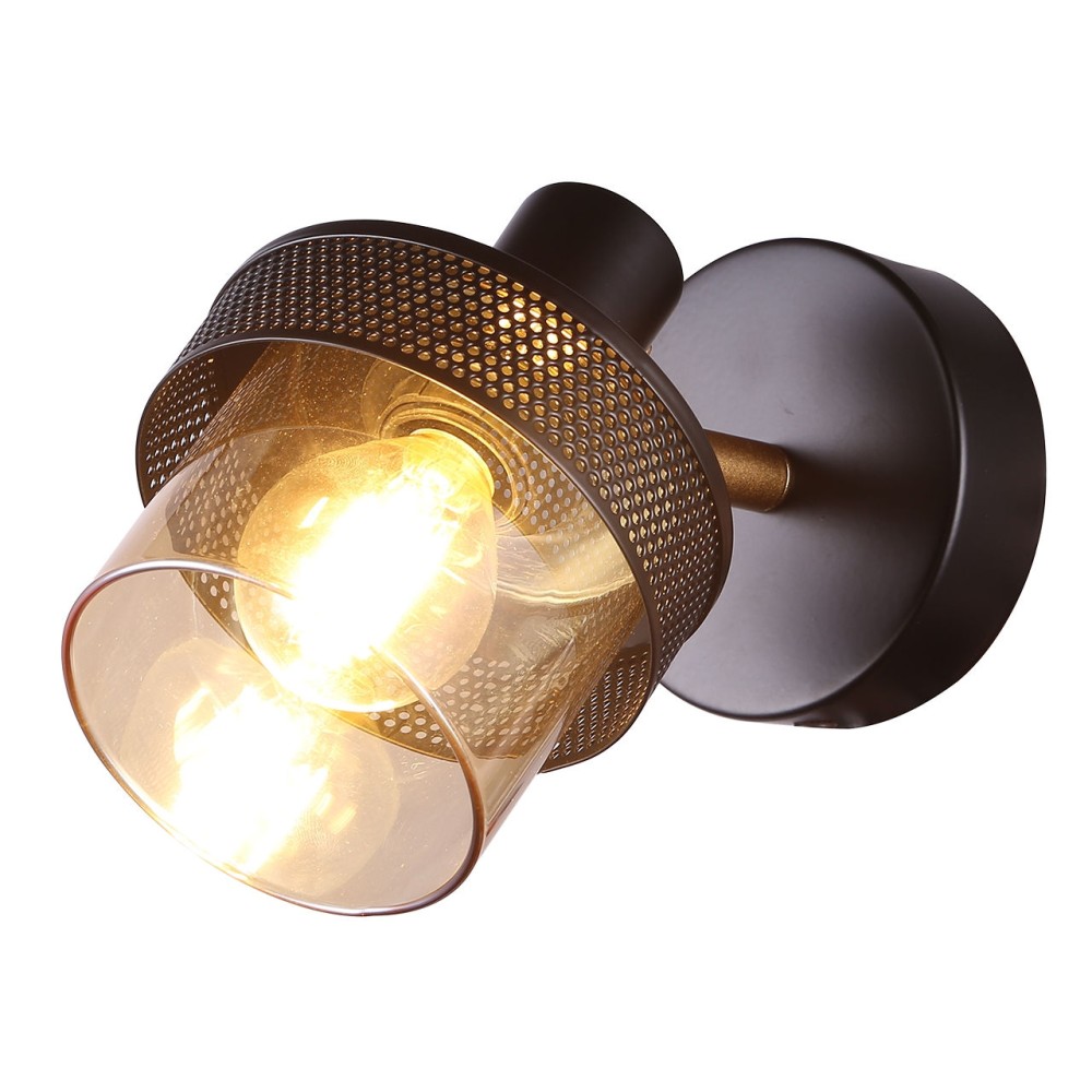 Спот настенный 1*Е14, черный+золото, янтарный плафон SP.052-11-01